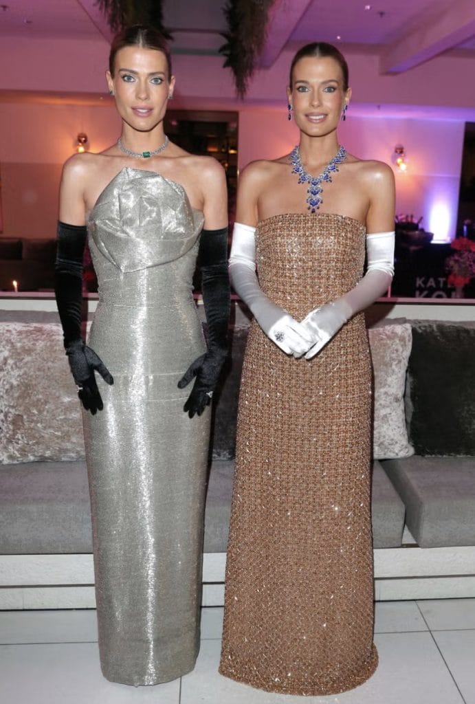 İkiz kardeşler, 68’incisi düzenlenen baloda metalik tonlardaki straplez elbiseleriyle adeta altın ve gümüşün zarif bir temsilini sundu. Lady Eliza Spencer, bakır tonlarında boncuk işlemelerle kaplı altın rengi bir tasarım tercih etti. Elbisesini aynı tonlarda Aquazzura topuklular, beyaz opera eldivenleri ve pırlanta-safir takılarla tamamlayan Eliza, klasik balo şıklığını modern bir dokunuşla yorumladı.