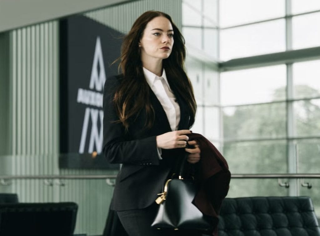 Emma Stone’un canlandırdığı Michelle karakteri ise güç, statü ve kurumsal kimliği yansıtan lüks parçalarla giydirilmiş. McQueen ceket, Saint Laurent kaban, Cartier saat ve Louboutin topuklularla tamamlanan görünüm, CEO imajını hem ciddi hem de teatral bir hale getiriyor. Johnson, “Başta çok resmiydi, sonra bunu daha şık ve ikonik bir çizgiye taşıdık. Bir sahnede Emma topuklularını öyle bir fırlattı ki biri binanın çatısına çıktı!” diyerek setin eğlenceli anılarını paylaşıyor.
