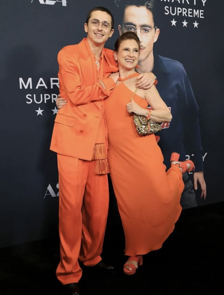 Los Angeles prömiyerinde Kylie Jenner’la birlikte giydiği, Chrome Hearts imzalı mandalina tonlarındaki deri kombinler dikkatleri üzerine çekti. Ardından oyuncunun annesi Nicole Flender’la aynı renkte uyumlu bir şekilde kırmızı halıya çıkması, bu rengin bilinçli bir mesaj taşıdığını iyice netleştirdi. Chalamet’in Haider Ackermann tasarımı Tom Ford takımı, Flender’ın ipek elbisesi ve Gwyneth Paltrow’un alışılmış “sade lüks” çizgisinden çıkıp turuncu saten bir eşofman takımı giymesi, filmin oyuncu kadrosunun bu renkte birleştiğini gösterdi.